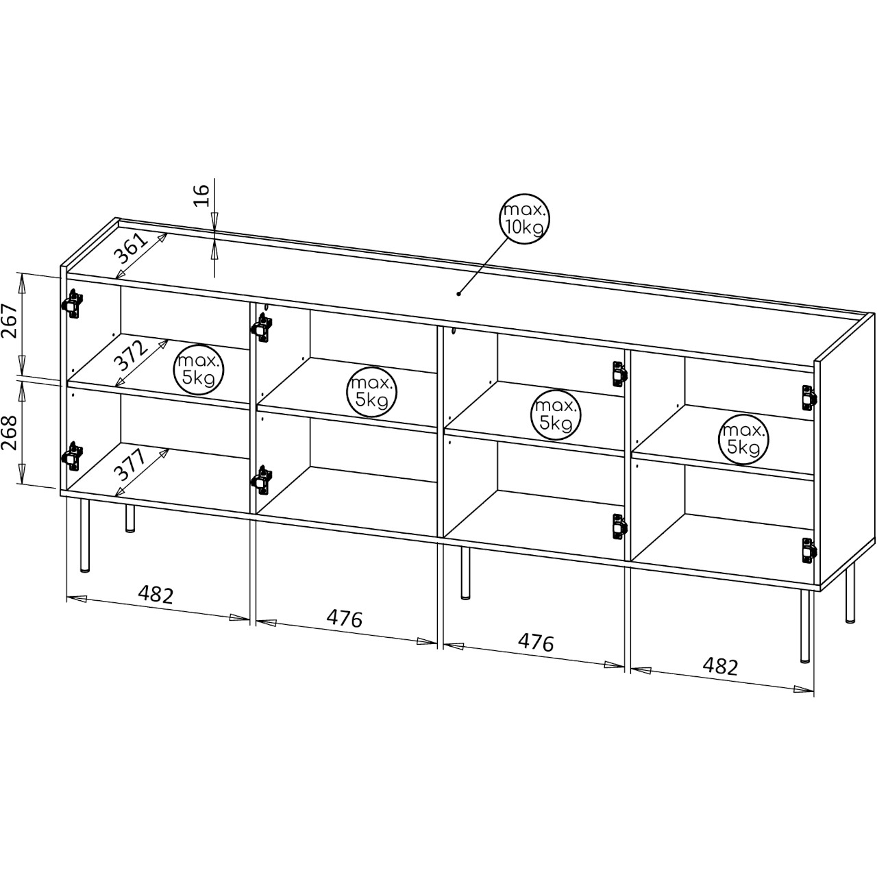 | Materiál | Laminovaná dřevotříska 16mm, nábytková deska MDF 18mm | |