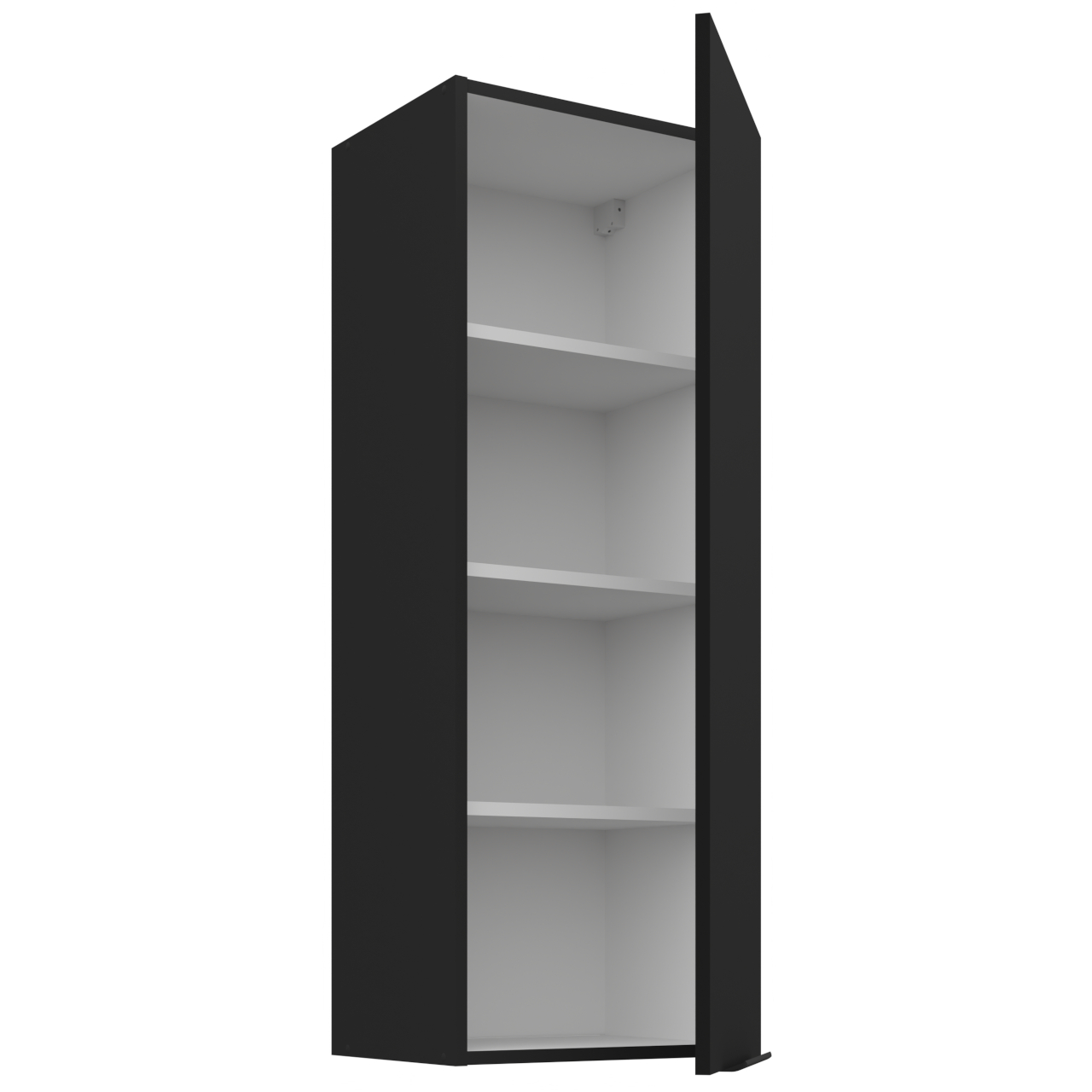 Vnitřek skříňky v bílé barvě. Skříňka má tři police. |