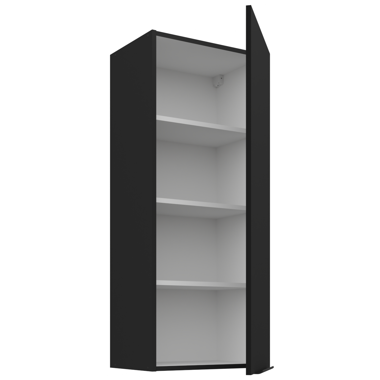 Vnitřek skříňky v bílé barvě. Skříňka má tři police. |