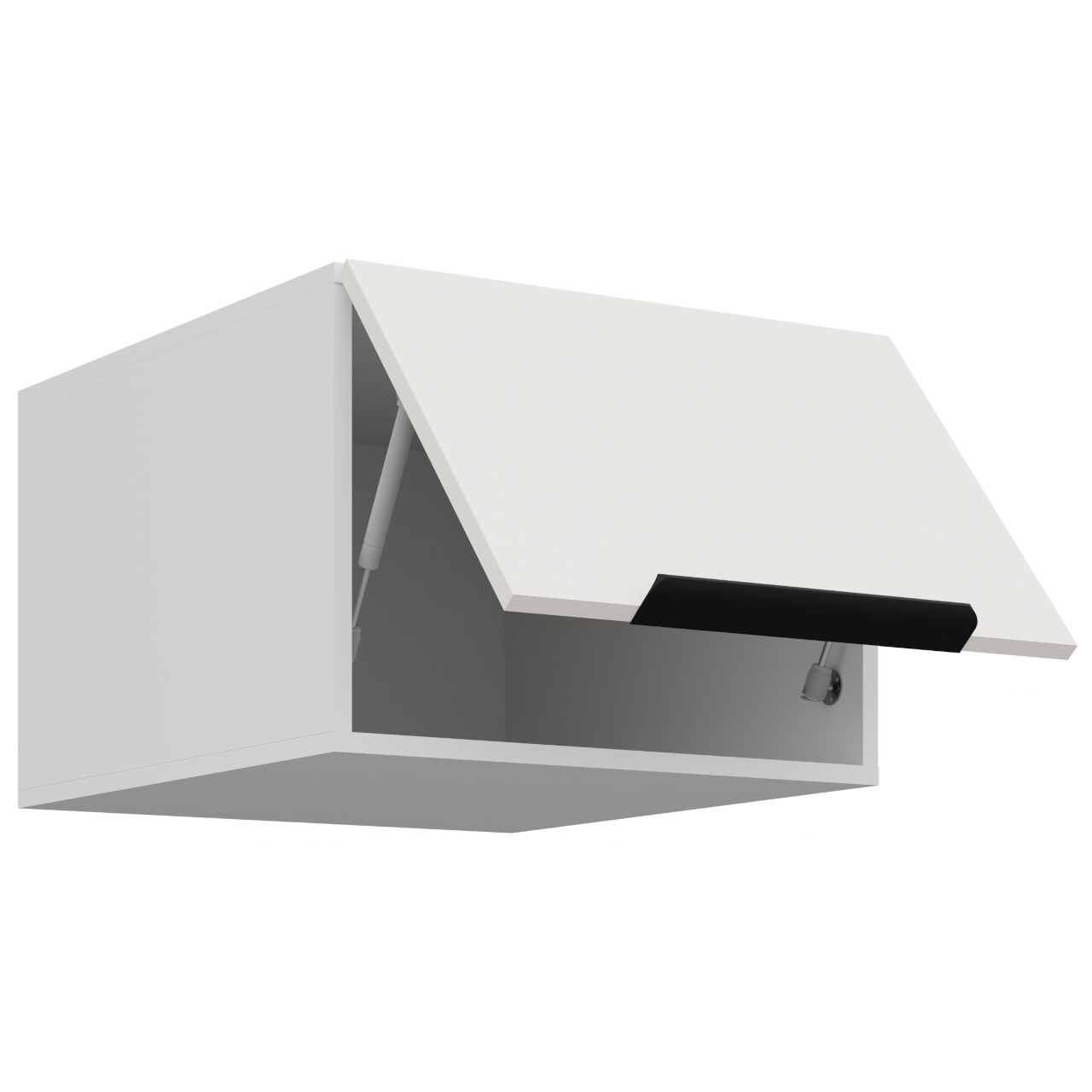Vnitřek skříňky v bílé barvě. Slepé otvory pro úchytky. |