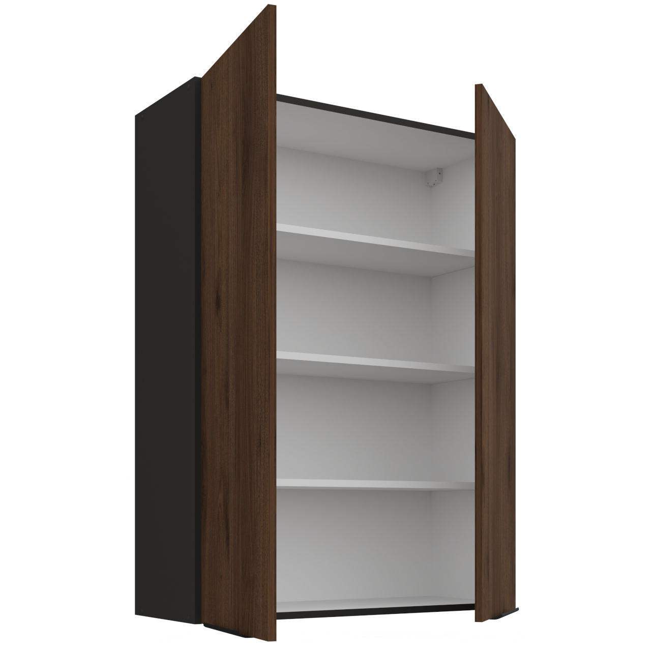 Vnitřek skříňky v bílé barvě. Skříňka má tři police. |