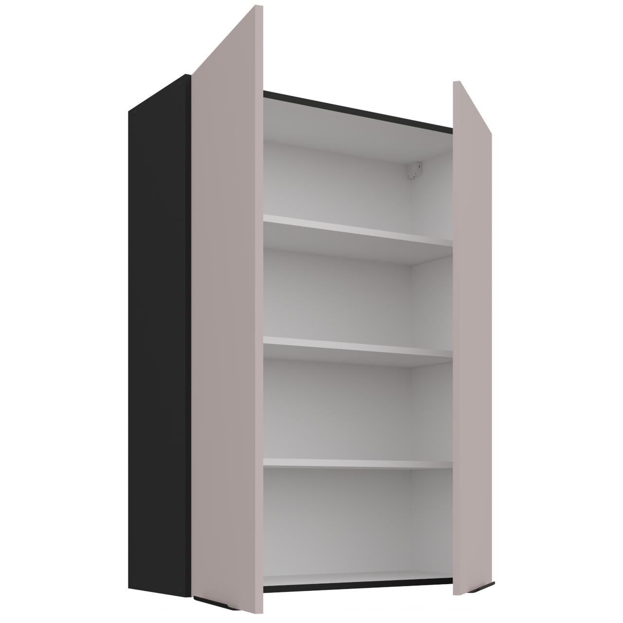 Vnitřek skříňky v bílé barvě. Skříňka má tři police. |
